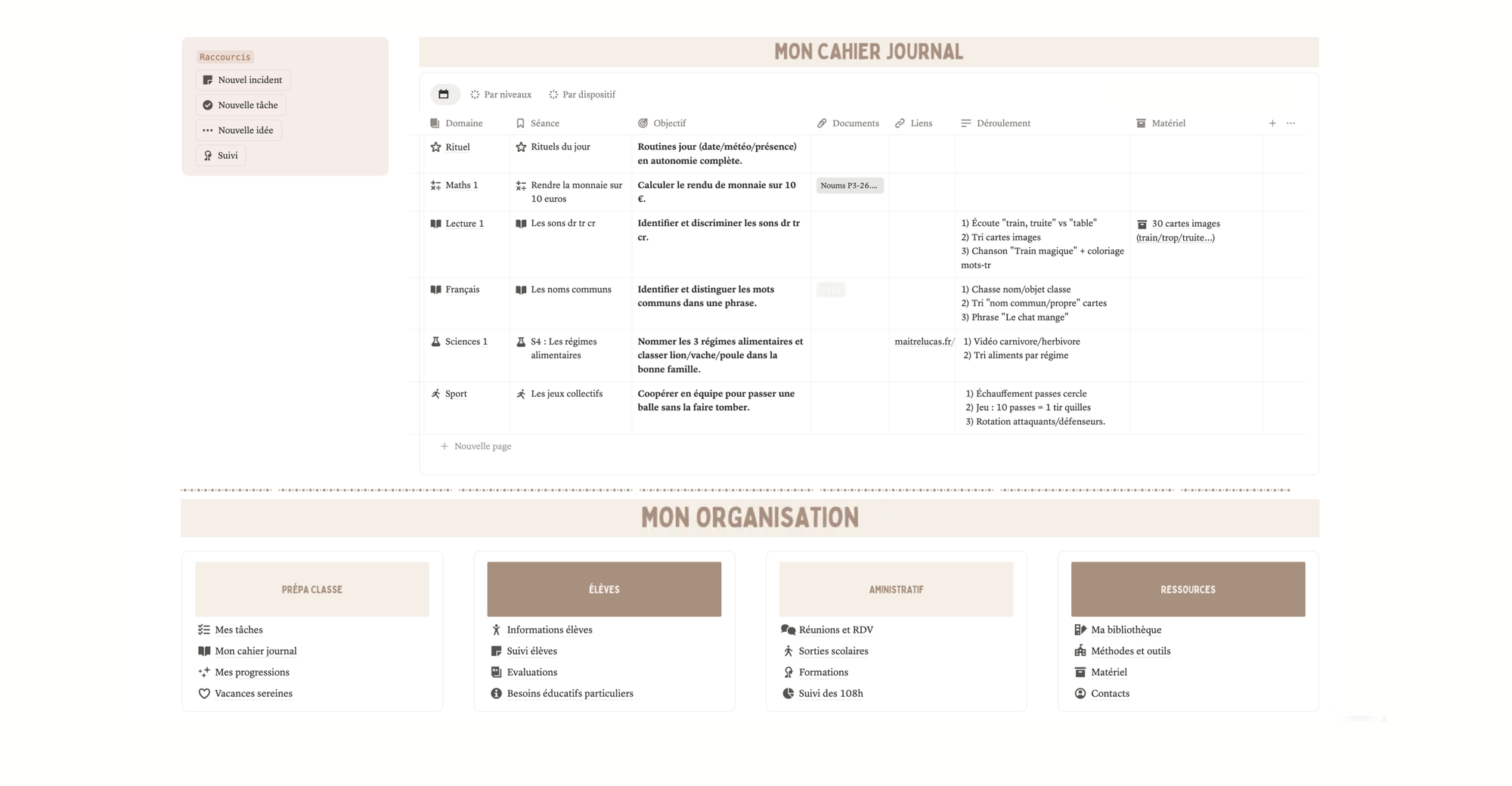 Si tu veux le même système, c'est dans mon Template Notion Mon espace enseignant, déjà configuré, avec le guide PDF et les vidéos pas à pas.